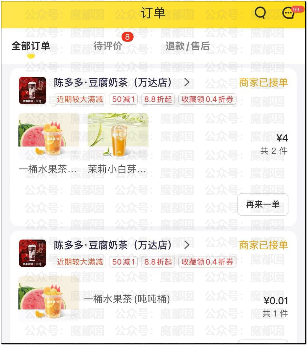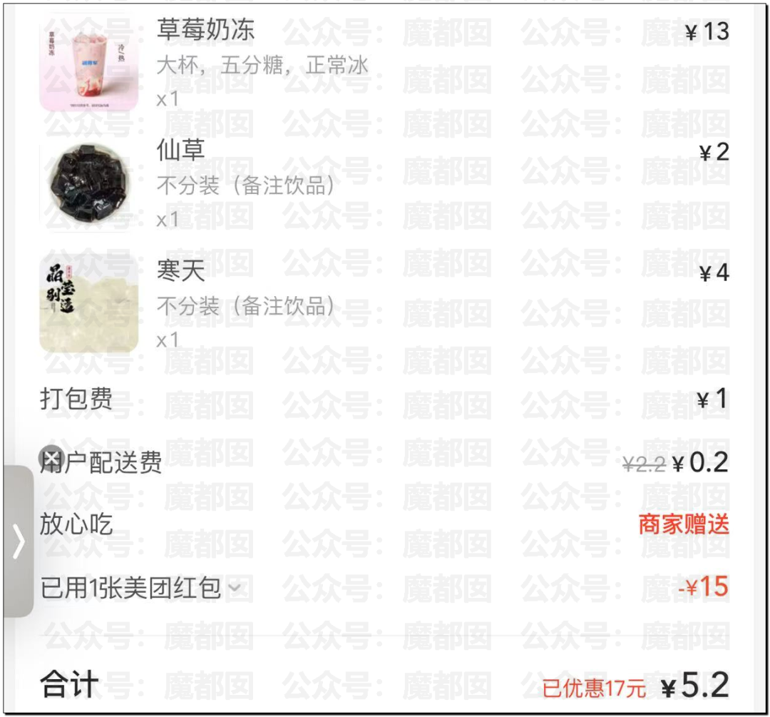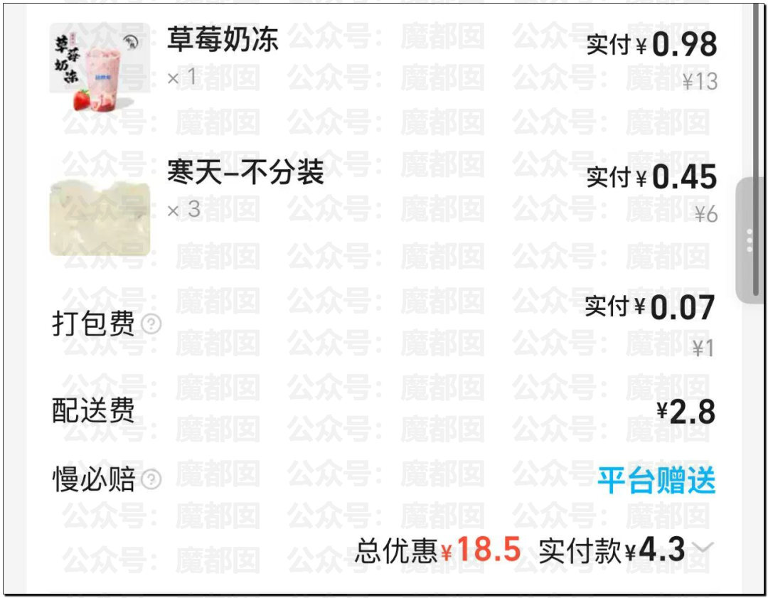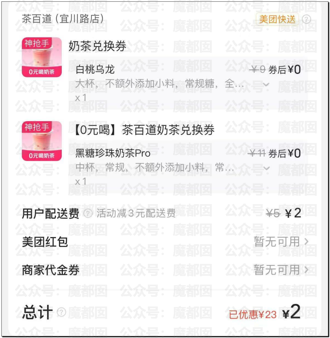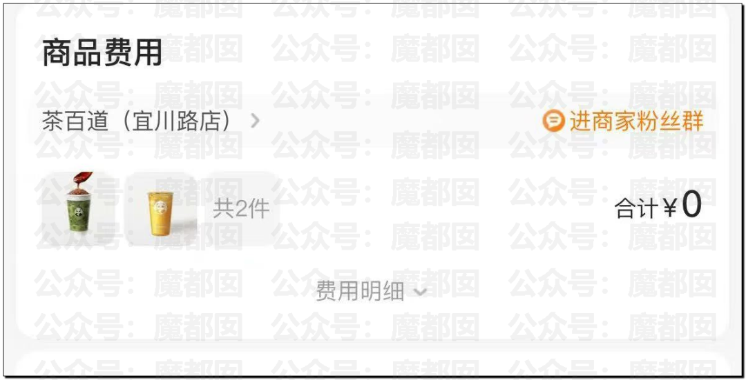 更离谱的是我们竟然真的看到了零元购……茶百道的2杯茶一分钱并不用付。