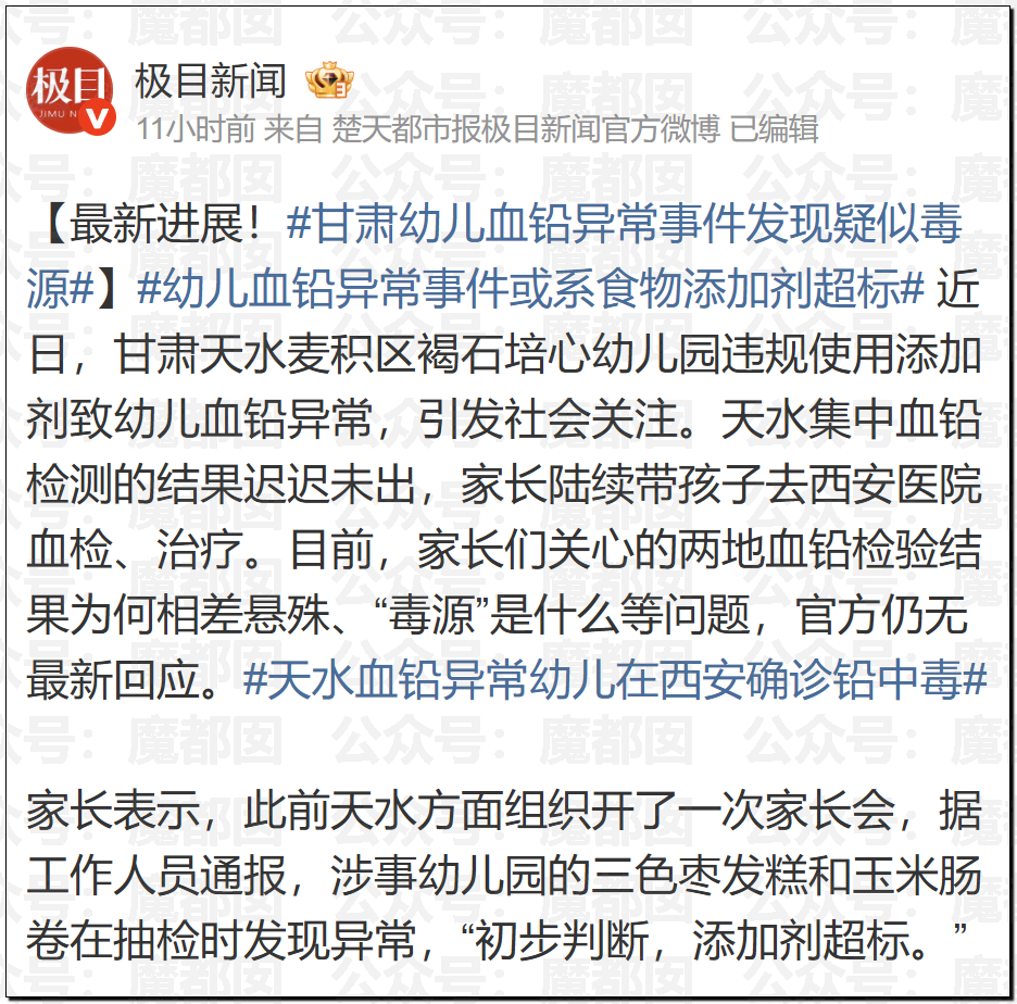 老规矩,收个尾优配中国,甘肃的那个铅中毒,结果好像出来了,是玉米肠卷和三色枣发糕。