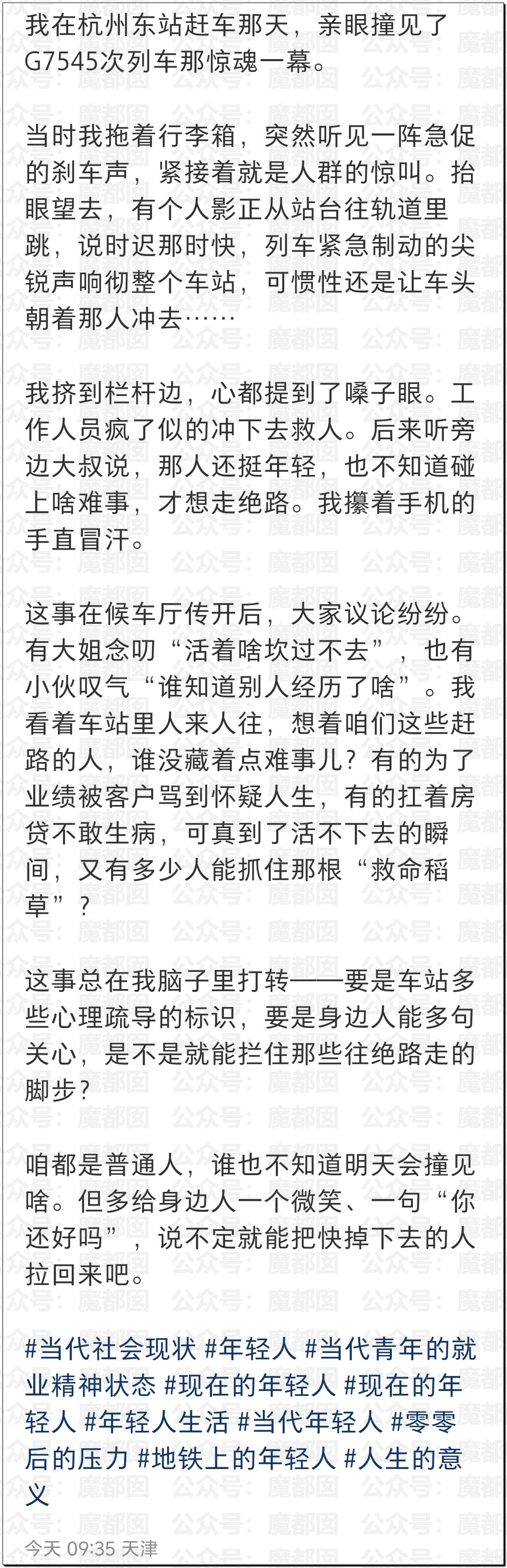惋惜是惋惜在卧轨的人据说是个年轻人,不知道经历了什么。