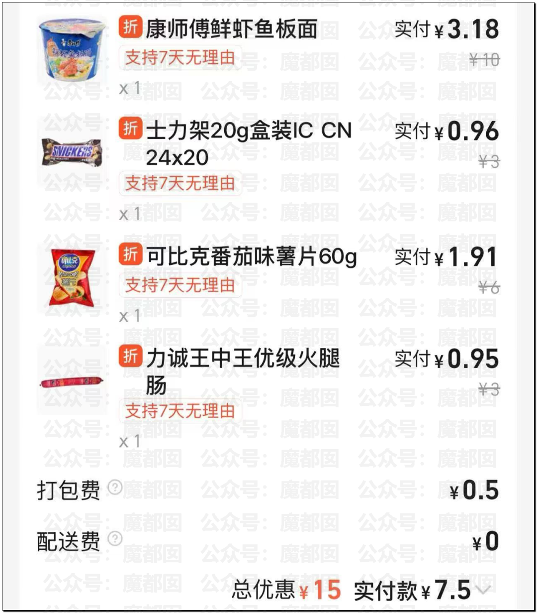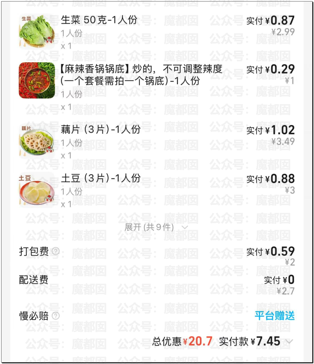 一小份20块钱的麻辣香锅最终付款7.5元。