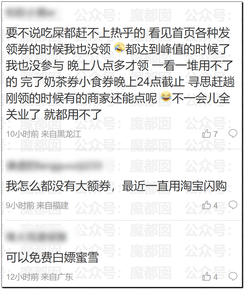 而为了阻击阿里,美团也上线了大量的外卖优惠券。我们的铁粉现场直播: