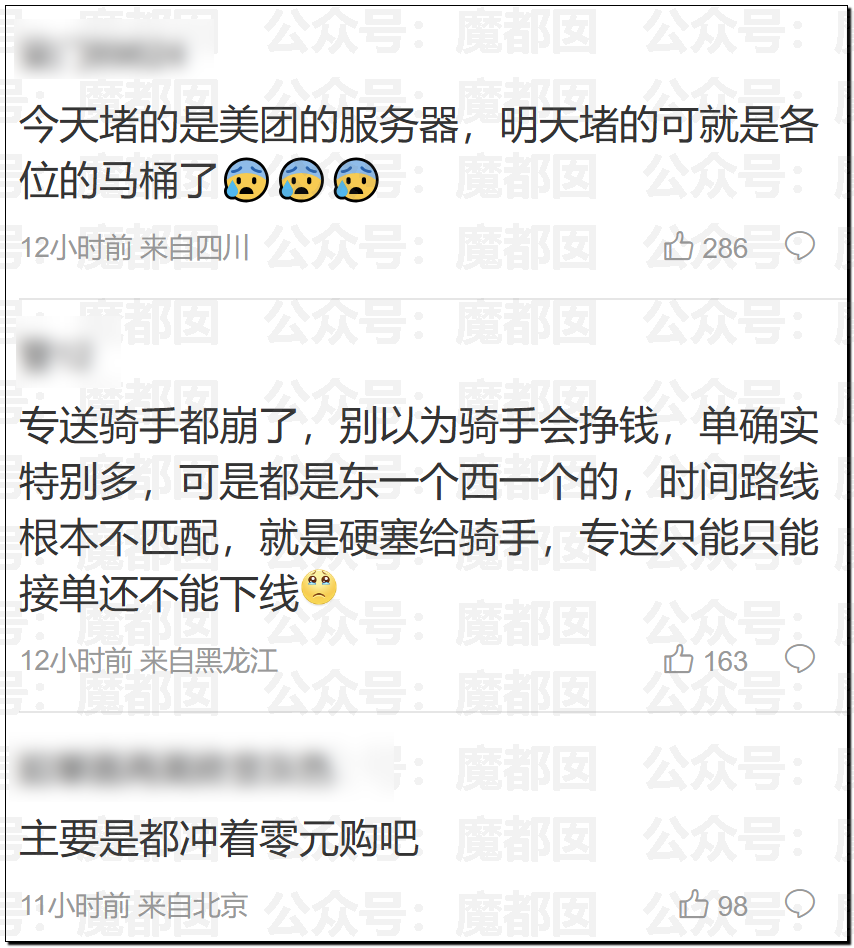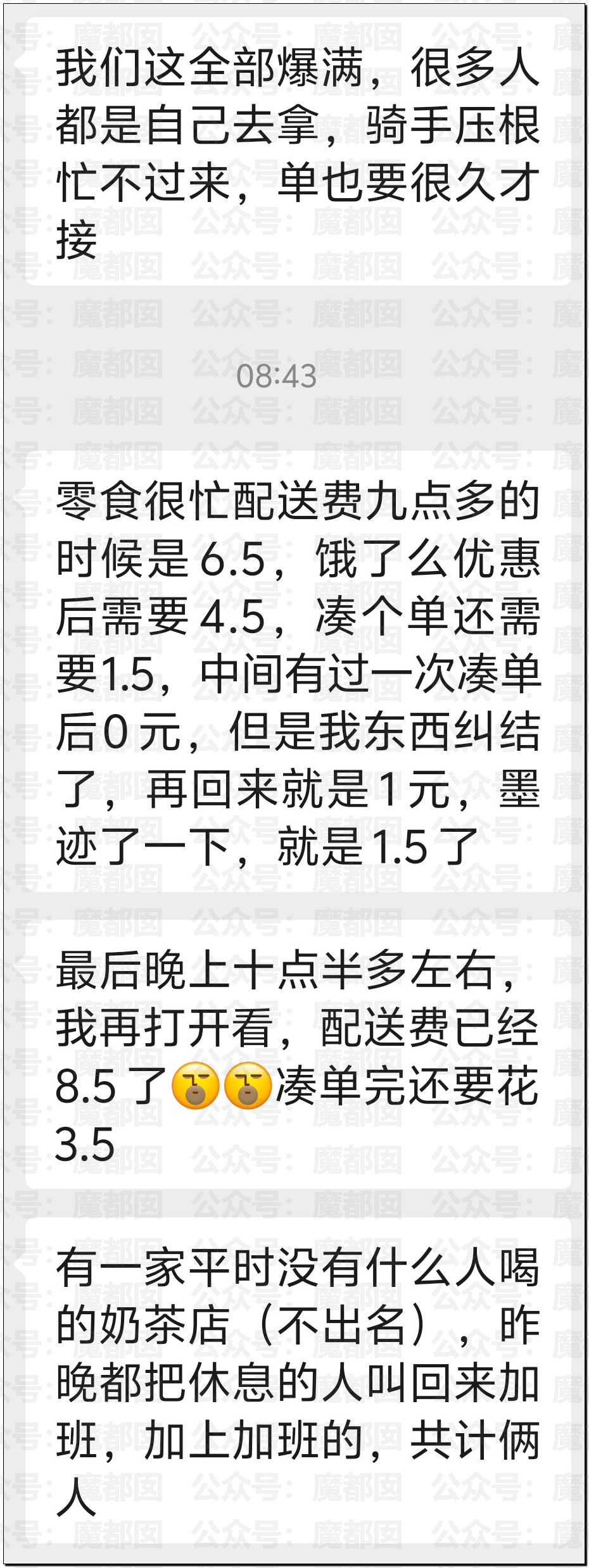 据说骑手们昨晚普遍爆单,根本没法接,实际上赚不到几个钱。