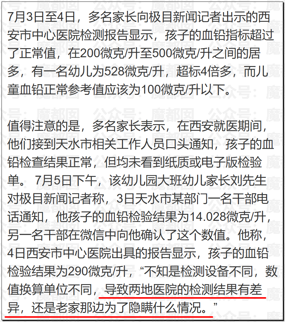 让我们非常痛心的就是当地的检测指标竟然和异地不同: