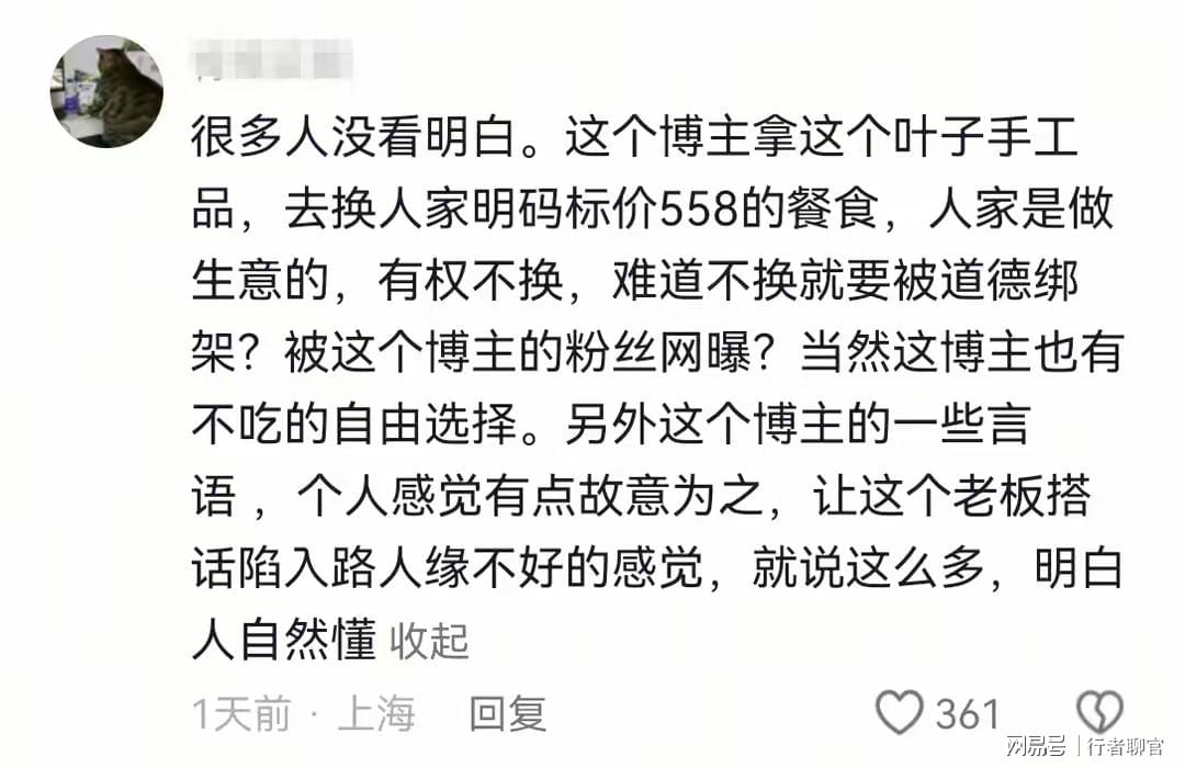 事件源于抖音博主“叶来香”的一次探店。“叶来香”以精湛的叶雕手艺闻名,过往视频中,他常将精心雕刻着老板形象的叶子作为礼物,与餐馆老板交换免费餐食,多数老板欣然应允,认为这份独特礼物极具纪念意义。